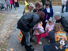 We just wait outside with the candy. It beats constantly answering the doorbell