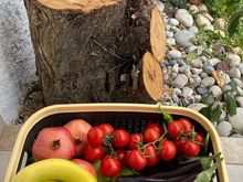 These are the remaining wild herbs for cooking a jar of homemade tomato paste and two bottles of homemade olive oil