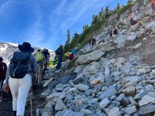 The steady stream of hikers heading up to panorama point