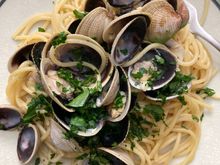Last night's miso Chilean sea bass and pan seared scallops. Side of watercress and Israeli couscous
