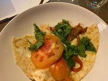 Chicory and sausage flatbread at Tonnarello's with a perfect crust.