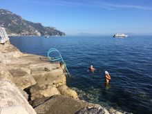 Further down the waterfront, past the beach, there are lots of rocks where many of the locals go swimming.
