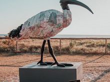 This fish is fabulous - and haunting.  Its  scales are made from CDs.  And its innards are from the plastic refuse we see in the ocean & which kills so much Marine life.