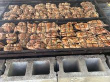 Pancakes cooked on a griddle because stove was busy with eggs and home fries