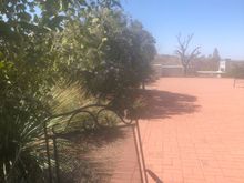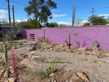 First pic is some of the stonework being done and one of several footbridges over areas that will act as little arroyos , and the vessel that will be a birdbath/ fountain that will run off a solar pump, sun being in unlimited supply here. In the background you can see the grey wall which will soon be plum. The painter is coming tomorrow to do some test patches . Gutters go up at the end of the month and then the water storage tanks will arrive shortly thereafter.