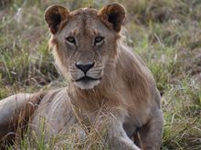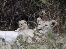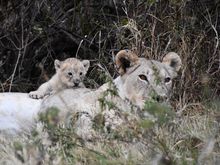 There is actually a 2nd lion cub but he was too busy nursing to turn around.