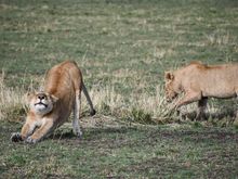 One wildebeest gets away and one doesn't.