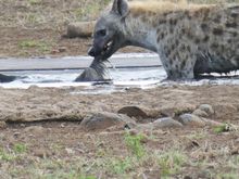 A herd comes down to drink before nightfall. Note the other occupant of the riverbank.