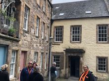 Meeting our tour group at the Mercat Cross.
