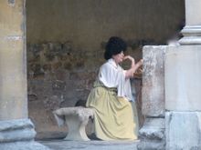 It is a docent demonstrating cooking during Shakespeare's time taken at Stratford upon Avon