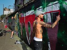 These street artists near Box Park gave me Banksy's real name: Ray Gunningham. It wasn't really a secret anymore. Few artists in any genre were so successful for so long, in keeping their real names and images out of the public eye. The fellow on the right told me that he was an old acquaintance of Banksy's from their old Bristol art scene days. *btw, Banksy's old car is now behind glass in Ely place.