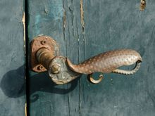 With the whimsical houses behind it, this boat was stored outside. But the local architecture also boasts some clever arched boat-storage shelter and corners.