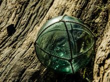 *The first of many shots featuring Asian green-glass fishing floats. Different shapes and ropes indicate different sources e.g. Hokkaido, South Korea, southern Japan and many more. These were long considered a beachcomber's No. 1 most-sought-after washed-ashore item to collect, til Chinese knock-offs flooded the Interwank.