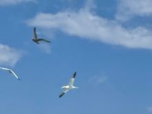 Northern Gannets migrating past the Delaware Bay. Brilliant white from a distance, they’re gorgeous when seen closer.