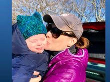 My grandson last week at one month. My sister made his comfy quilt.