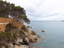 First view of the beach and castle in Tossa de Mar