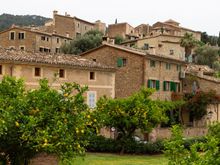 Zoomed in views of Deias hillside homes and hotels from the cemetery