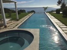 Great patio with pool on the right. I've been in it three times today. It's hot here.