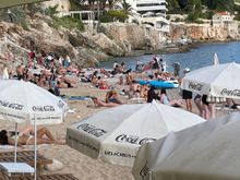 Seaside, very Italian looking. The tower for the church Euphemia in the background.