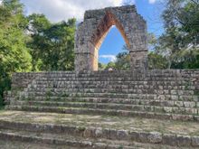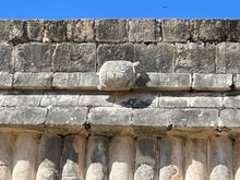 This is from the Nunnery Quadrangle. There is a giant serpent and a person's head coming out of the mouth.