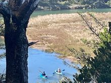 After a while, it's a mile trail, we come to a little pond and are looking for critters, but don't see any, then we saw an osprey which was pretty cool.