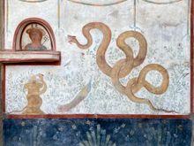Walking through an underground cistern. You can see the high water marks on the walls. Not seen here, the holes in the ceiling where buckets were lowered to draw water.