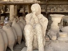 Inside an underground cave-church, carved right out of the stone...plus some red dots for social distancing.