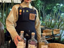 Beef carpaccio with grasshoppers, and a almost-finished fish tostada.