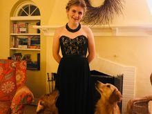 The puppy is so disappointed that we won’t let her catch our in-laws’ cat. She has the cat treed in the Christmas tree in this pic.