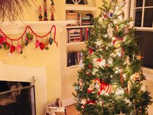 Molly hanging out in the rocker. The tree. And my daughter’s nativity set. If you look closely there is a polar bear. She used to add a whole menagerie when she was little: giraffes, cats, dogs, a bear, elephant, etc. I still throw the polar bear in for old time’s sake.