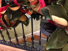 Magnolia garlands on stair railing