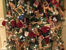It’s rattan but has held its shape well. This tree is 7.5’ and is decorated in a style a friend calls “woodland glam.”