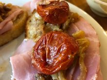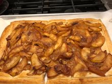 Onion tomato tarts about to go in the oven. I used whatever cheese I had on hand (gruyere, mozzarella and Parmesan) and added crispy pancetta on the bottom of the tart. Used the roasted tomatoes I made the other day, drizzled with olive oil and balsamic vinegar before roasting. Fresh thyme with the Vidalia onions, caramelized with garlic then deglazed with Pinot Grigio. This and a salad will be WFD. And leftover scones that I have hidden for dessert!