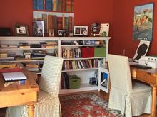 My home office with two desks and two laptops