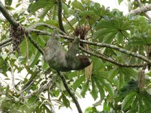 And here's one of the many sloths we saw. They like to hang out in this type of tree; I believe it's called a cecropia tree.