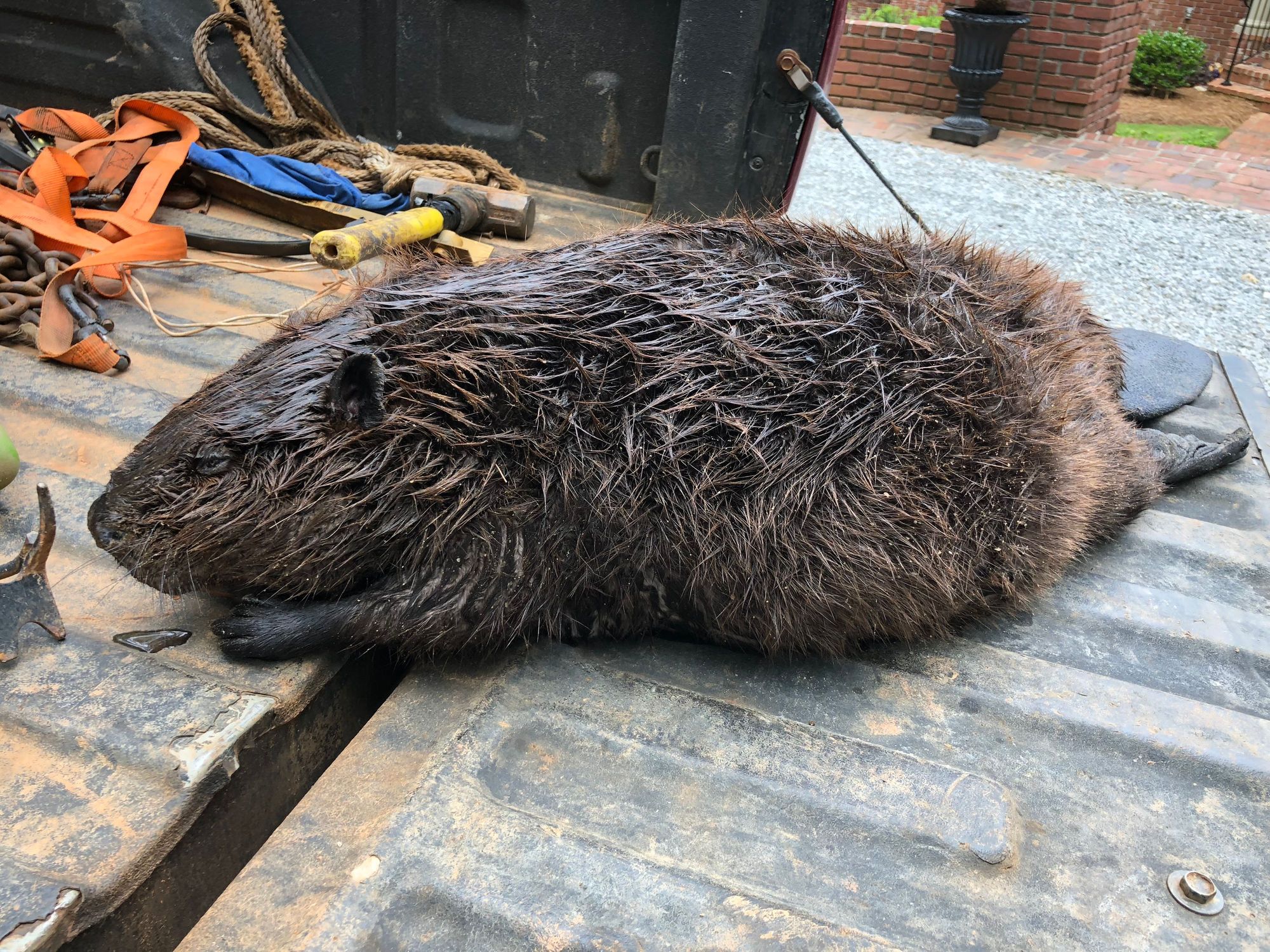 This is an adolescent beaver who died in a trap. Altogether this summer we’ve caught three, including one pregnant female. The live ones were relocated per state law (which I think is a little unfair to simply foist the problem on another creek). Beavers are the bane of our existence; we manage 10 acres in conservation and have to balance the tree damage and stagnant water against moving the beavers. Last year we did not move any.