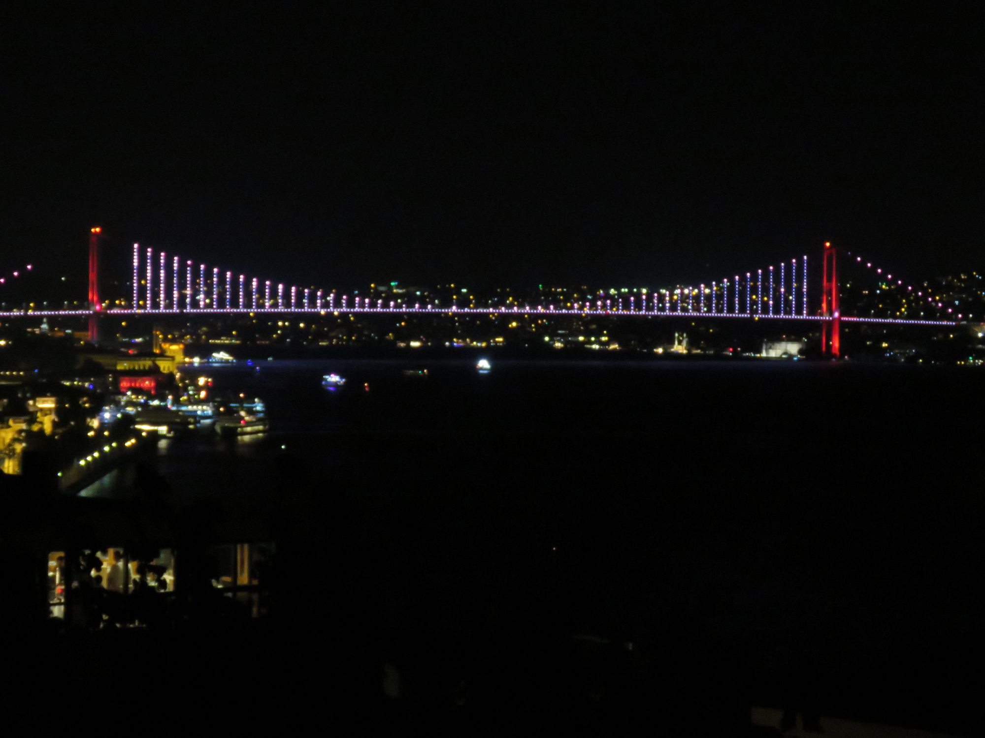 Our balcony view up the Bosphorus, The First Bosphorus Bridge between Europe and Asia