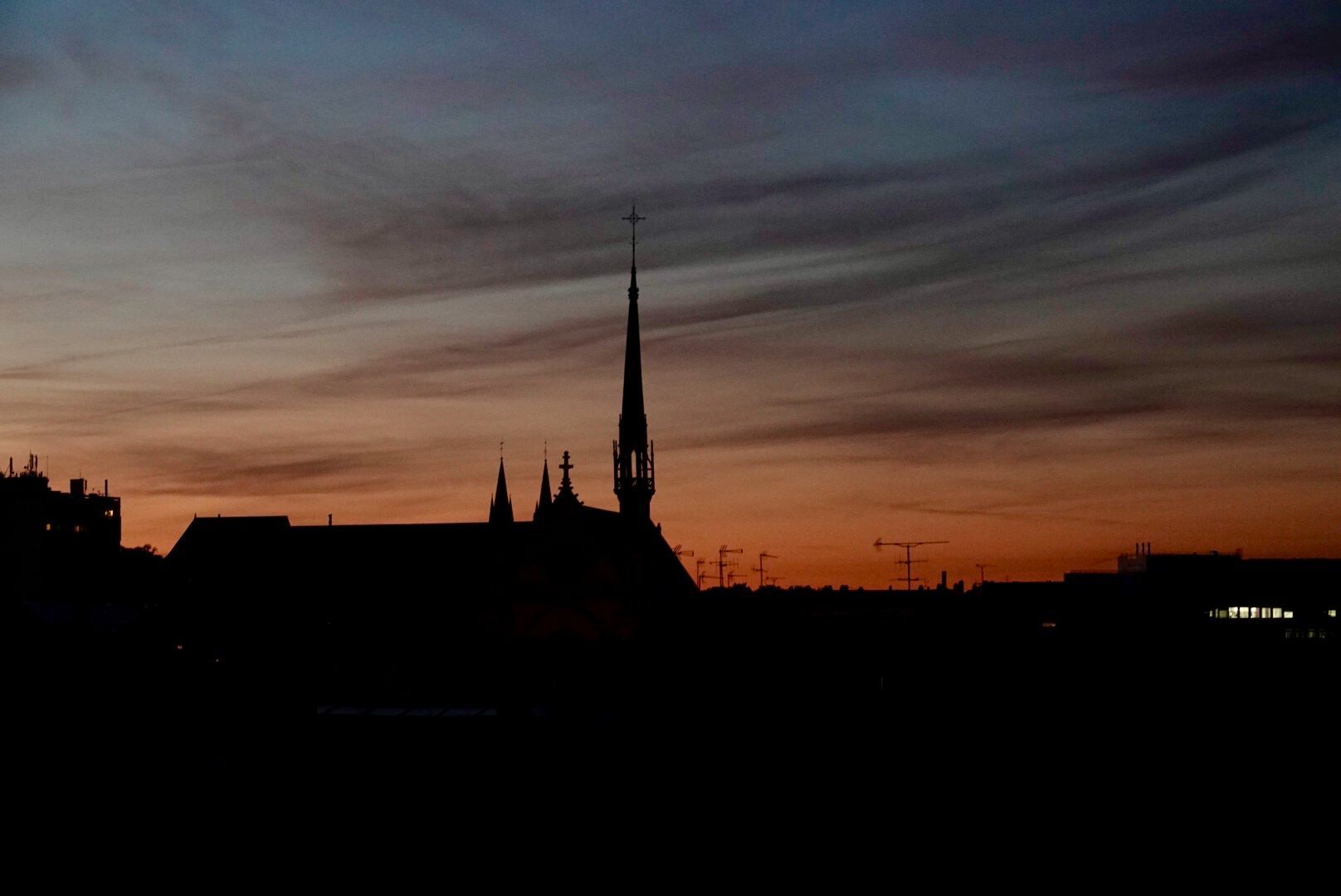 Sunset over Basilica of Reims