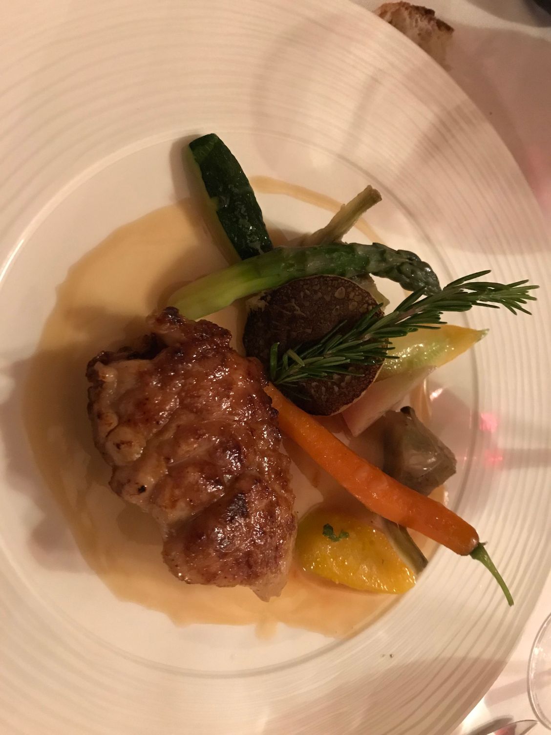 I hope this photo loads properly. We managed to find the restaurant last night though not with any help from the GPS. It kept directing us up alleys and the wrong way up one way streets. Finally we parked and walked up an alley. My reward was the ris de veau posted. Yum!