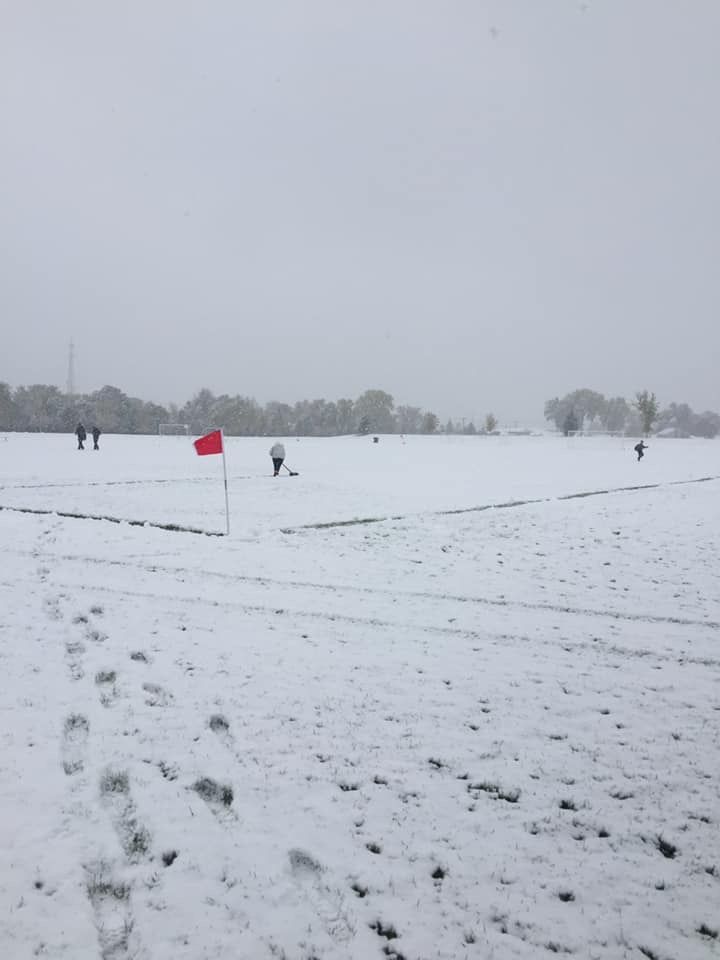 Shoveling the soccer lines before just calling the game.