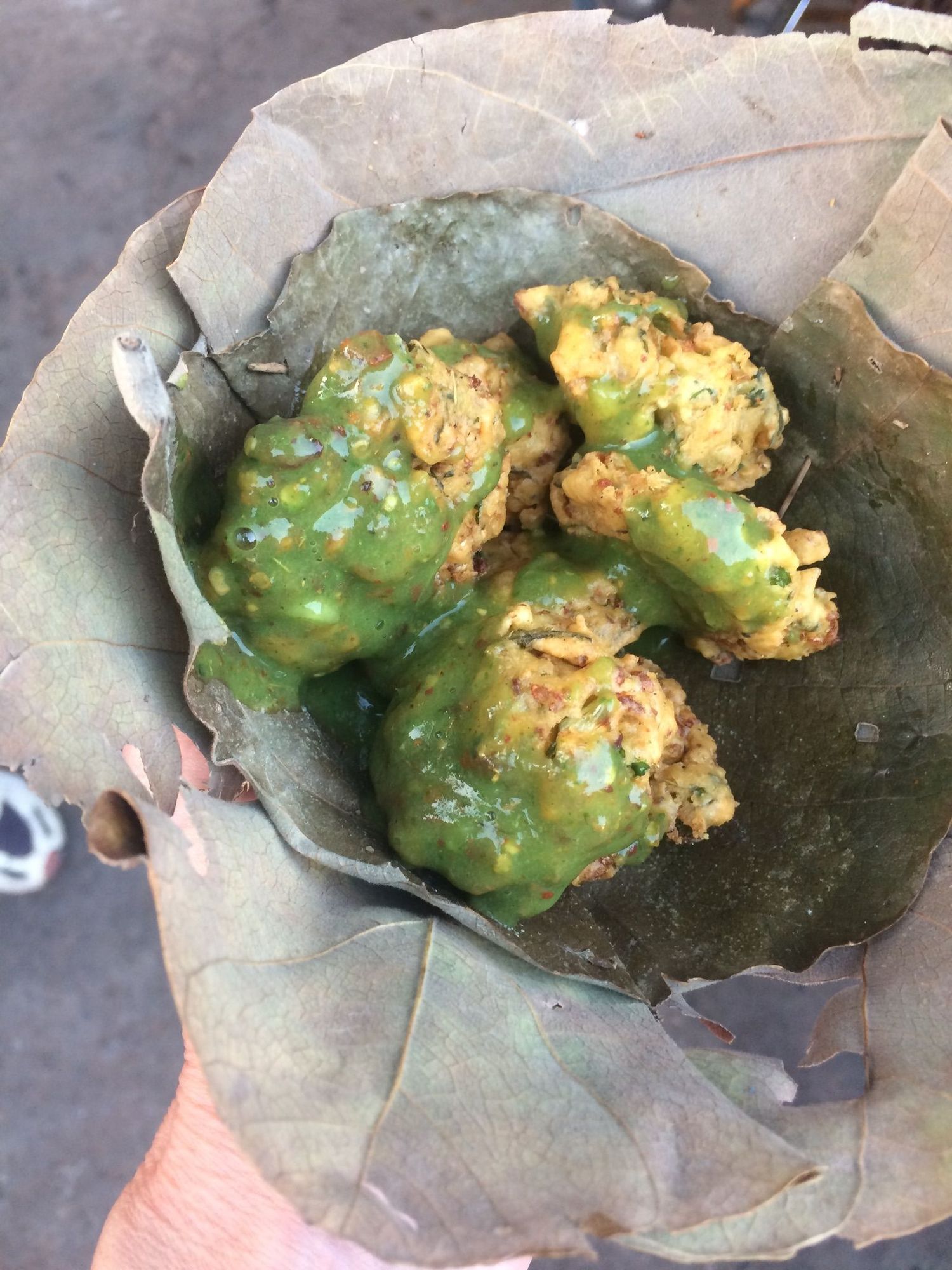 Veggie pakora with coriander chutney..so good for 20 rupees.