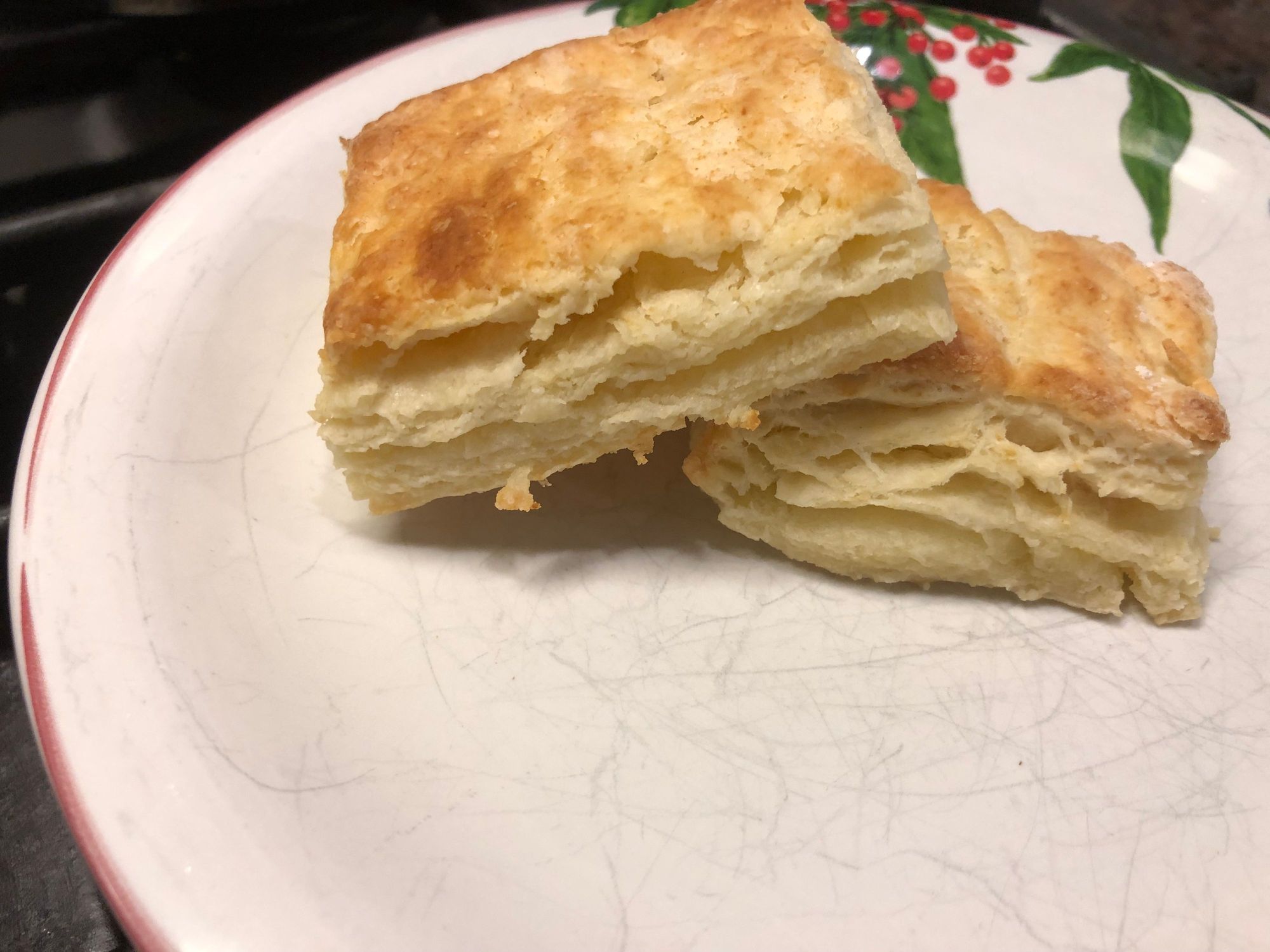 Flaky but sweetish, too much sugar in recipe. I cut them in squares to maximize my yield from the first roll out.