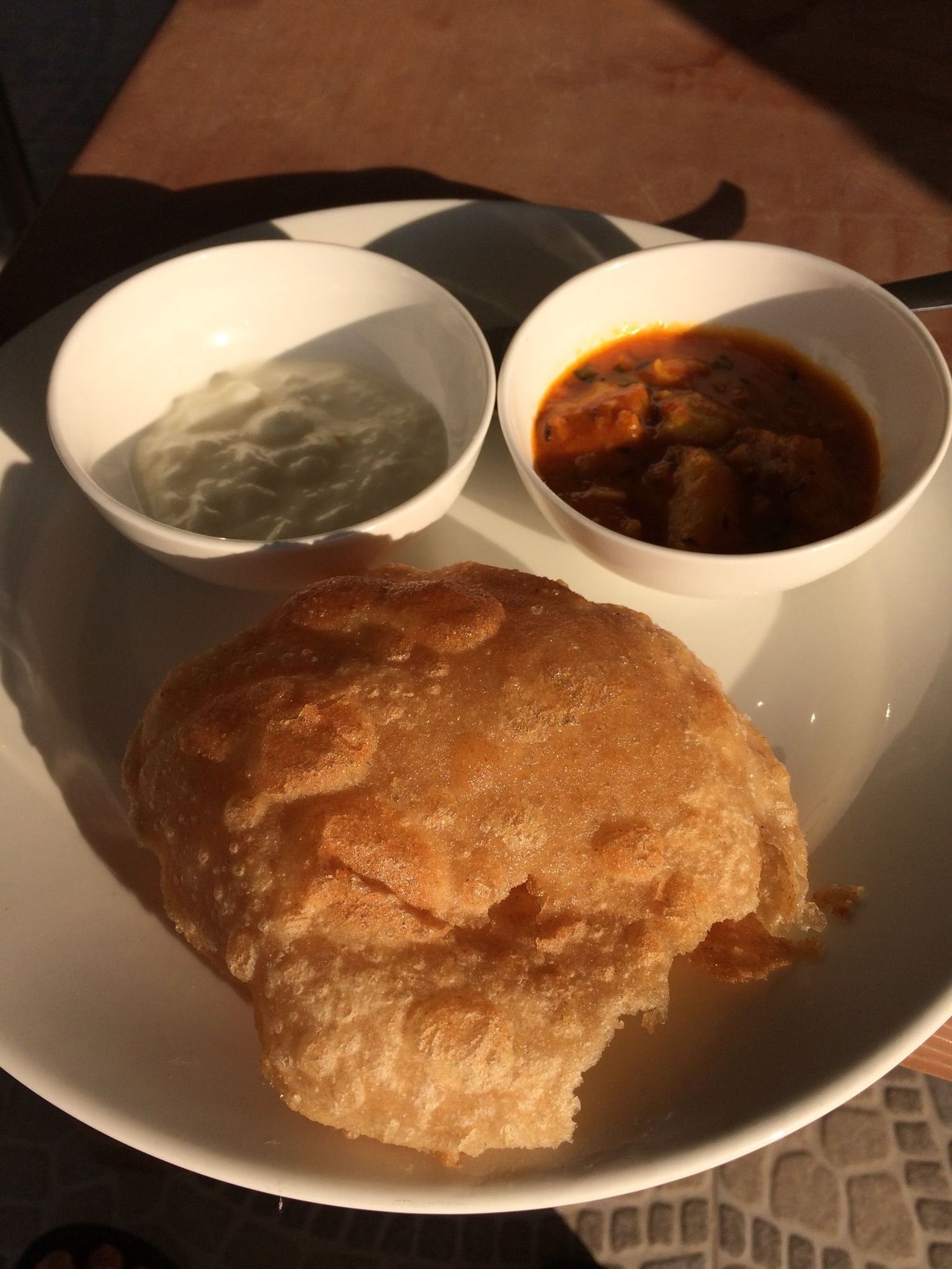 Pooris with fresh chutney and masala aloo.