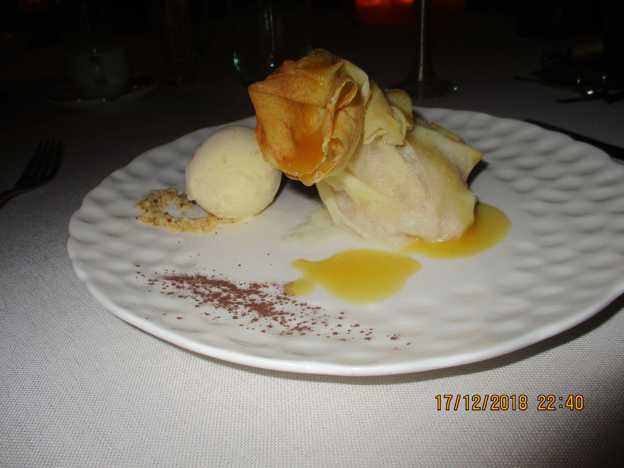 Medallion of chicken in crispy ouarka with mashed potatoes with black garlic