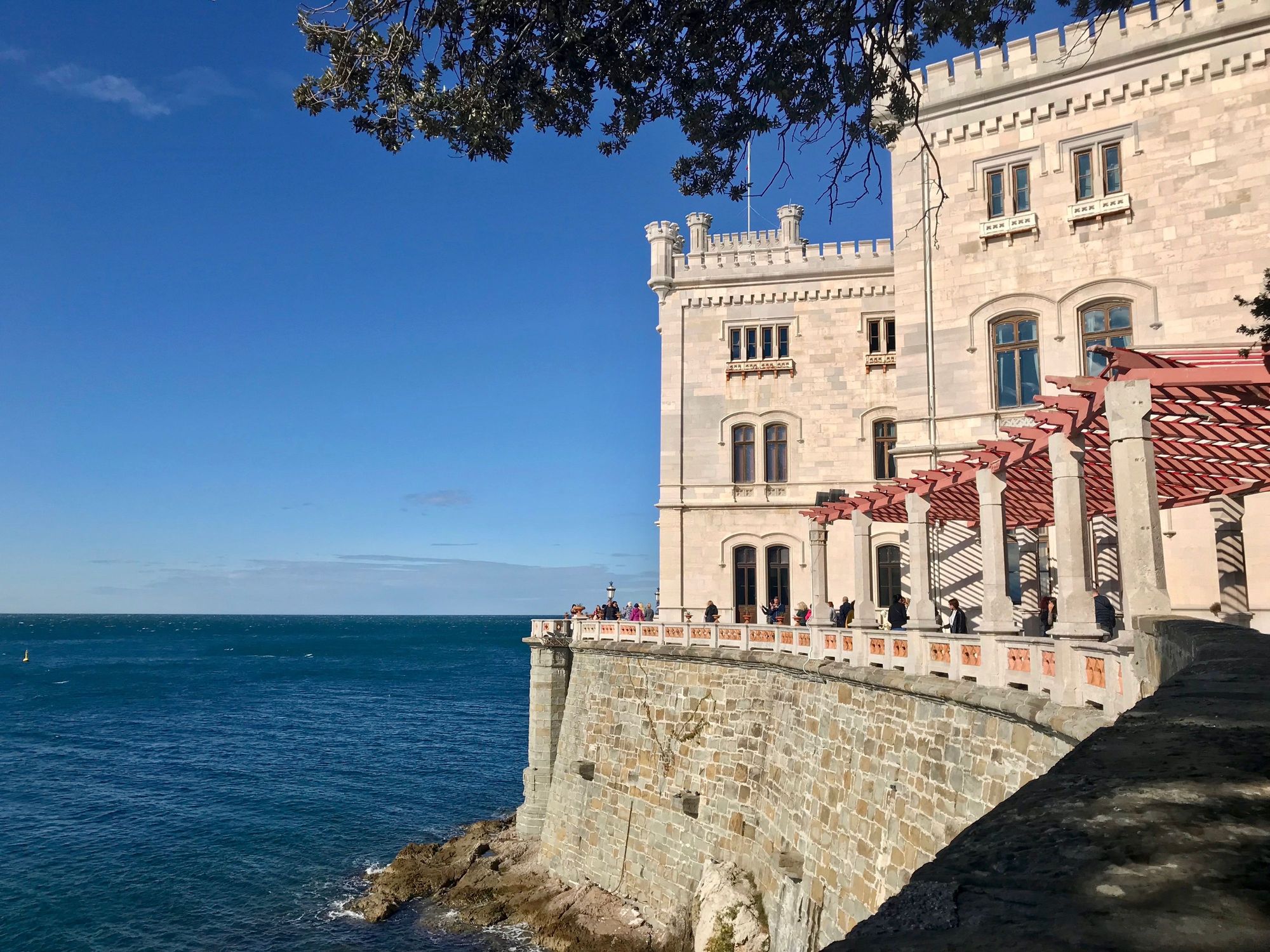 Castello Miramare located on top of rocky promontory overlooking Gulf of Trieste