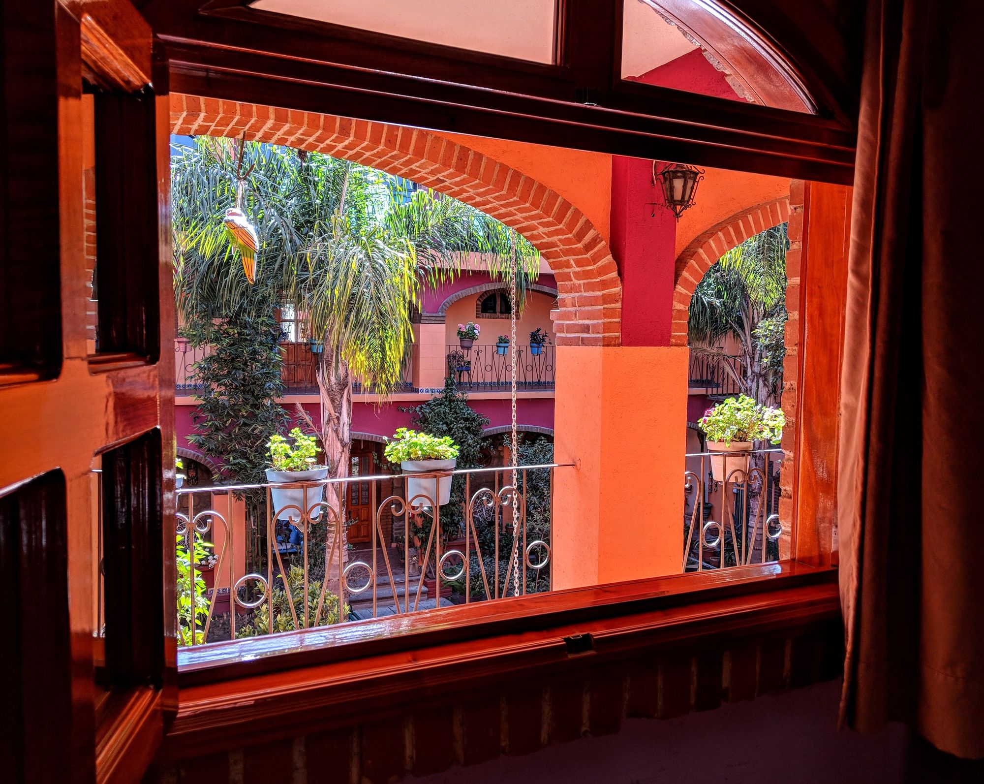 Looking out at the courtyard from our bedroom at the Casona de Cortes