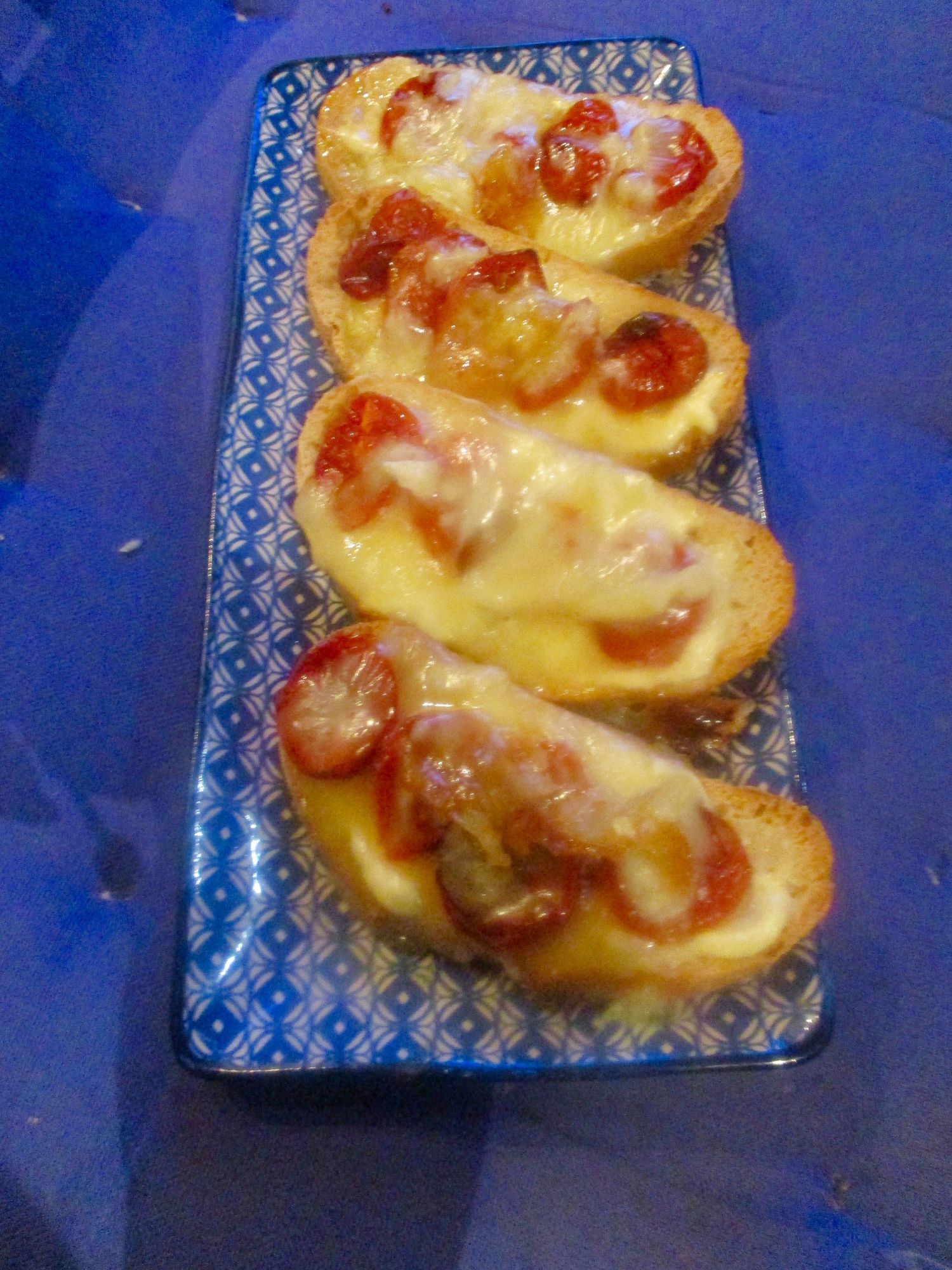 Toasts with tomatoes, cabécou, and honey