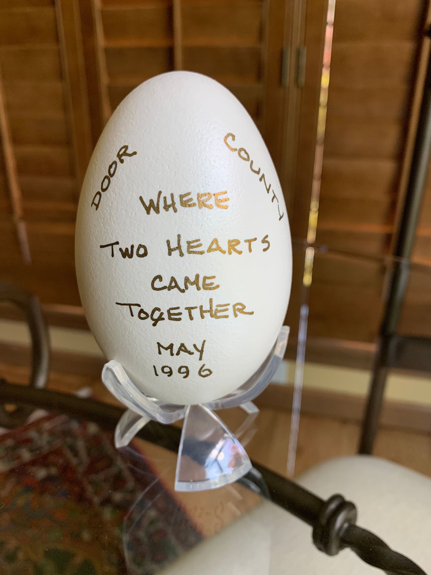 Our prized momento from Door County. DW has always been into angels, which is no doubt why she married me, and we were fascinated by this egg which we had shipped home rather than risk breaking while traveling.
