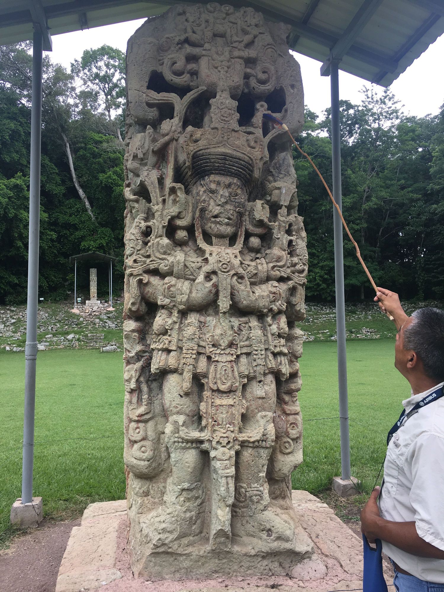 18 Conejo, 13th King is Copan. Numerous statues like this punctuate the Grand Plaza of Copan