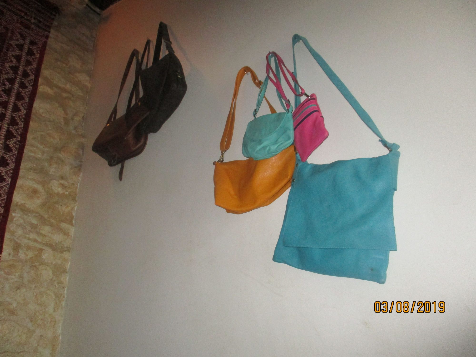 I thought it was kind of whimsical to hang our bags on the staircase wall